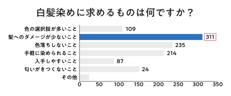 白髪染めに求めることをの圧倒的第1位は「髪へのダメージが少ないこと」