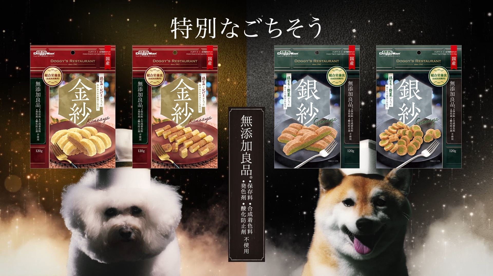 商品紹介:2023年3月20日に発売した「金紗・銀紗」は、ドギーマンのヒット商品「紗」とは個性の異なる、新たな紗シリーズとして誕生しました。保存料・合成着色料・発色剤・酸化防止剤不使用、総合栄養食の基準を満たした栄養バランスに優れたおやつです。