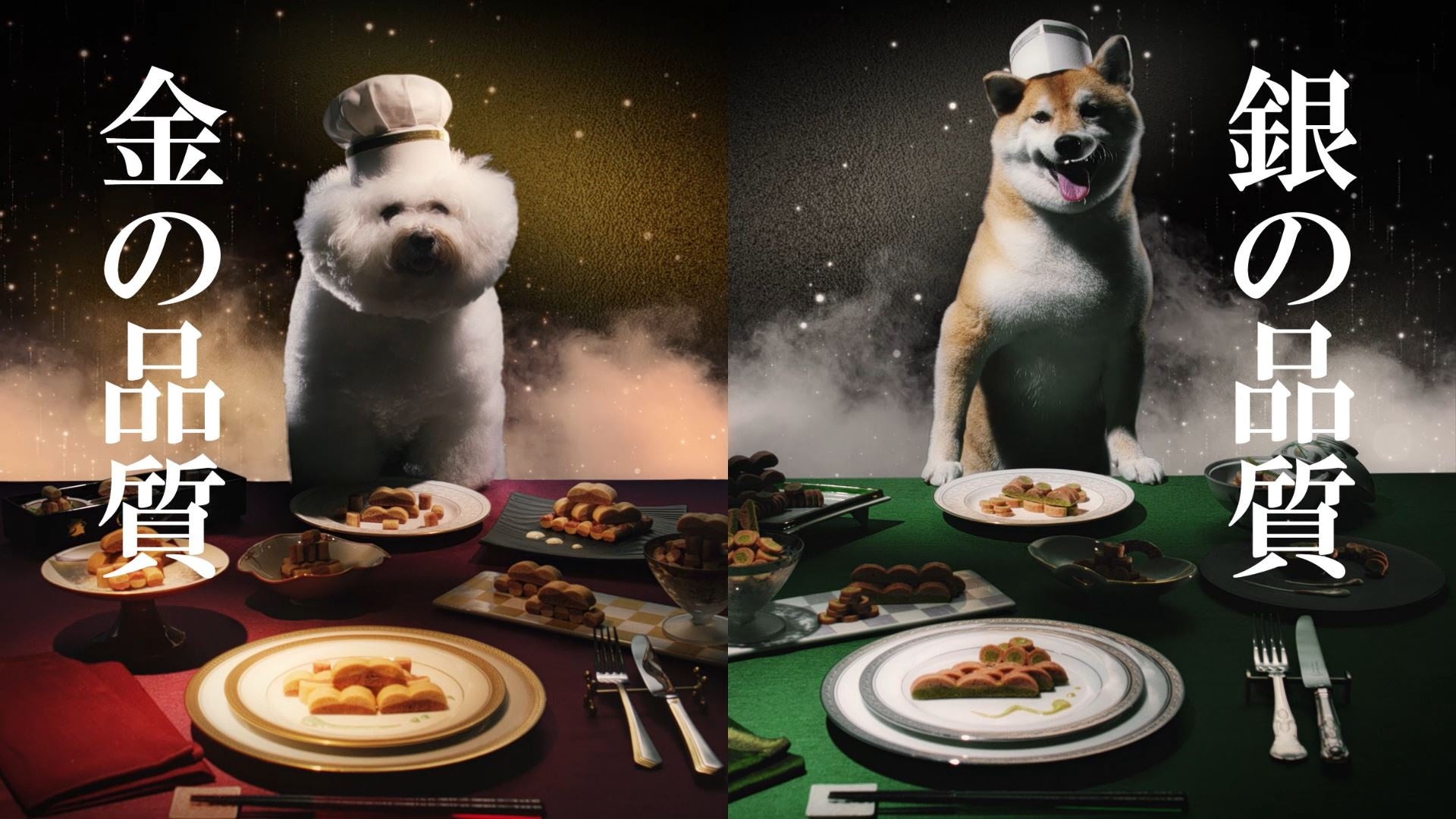 CM制作背景:『金紗・銀紗』シリーズは、素敵なレストランで味わうような、特別感のあるおやつをコンセプトにつくりました。とっておきの、おいしい、ひとときをお届けするおやつというメッセージを込めて今回のCMを制作いたしました。