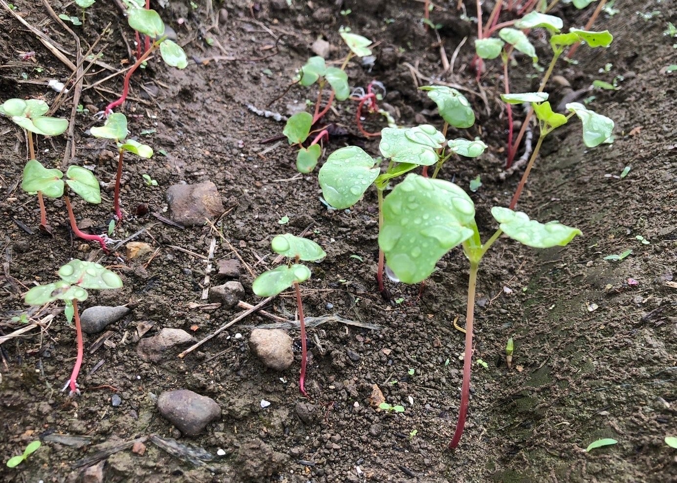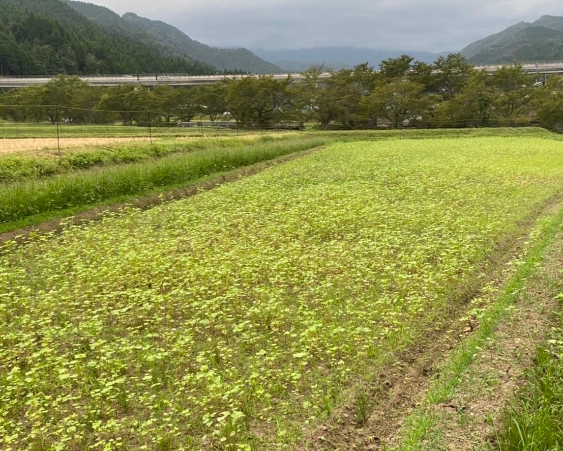 種はやせた土地でも容易に育てられるといわれる「そばの種」です。将来的にドローンでそばの種をまき耕作放棄地を再生させていくため、弊社は兵庫県但馬地方の八鹿酒造様や豊岡市の西村農園様と協力して一緒にそばを育てています。「そば」は、本当に手がかからず簡単に育てられるのか?実際はどのように育っていくのか?動物に食べられてしまわないか?などの疑問を、実際に一から育てることで検証しています。