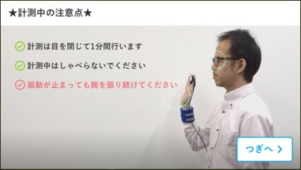本計測で得られる身体機能と感覚機能の評価結果に応じて、個々に最適な改善トレーニングを提案します。本検証では、参加者にフィードバックする評価レポートに記載した改善トレ一二ング内容を、主催者から参加者に説明します。トレーニングを継続的に実施いただき、次回の健康イベントでの計測で改善効果を確認します。