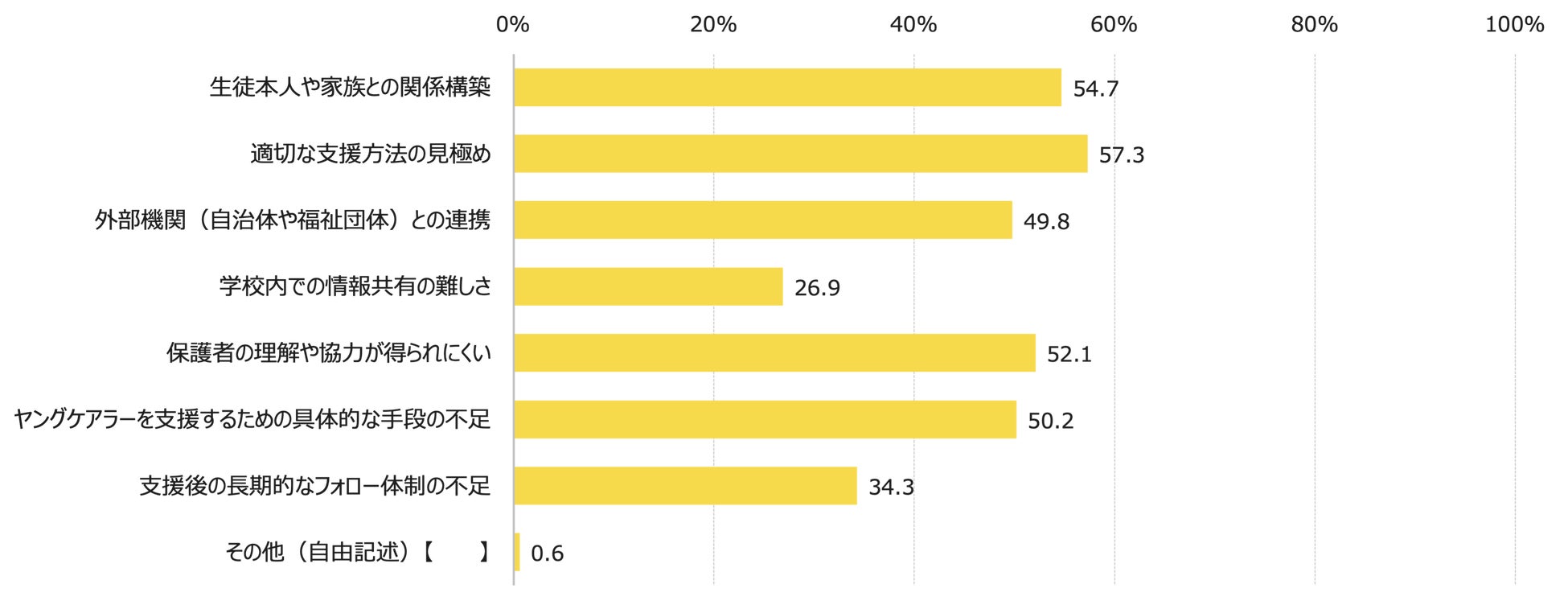 本調査の結果から、学校現場でのヤングケアラー支援には以下の課題があることが示されました。