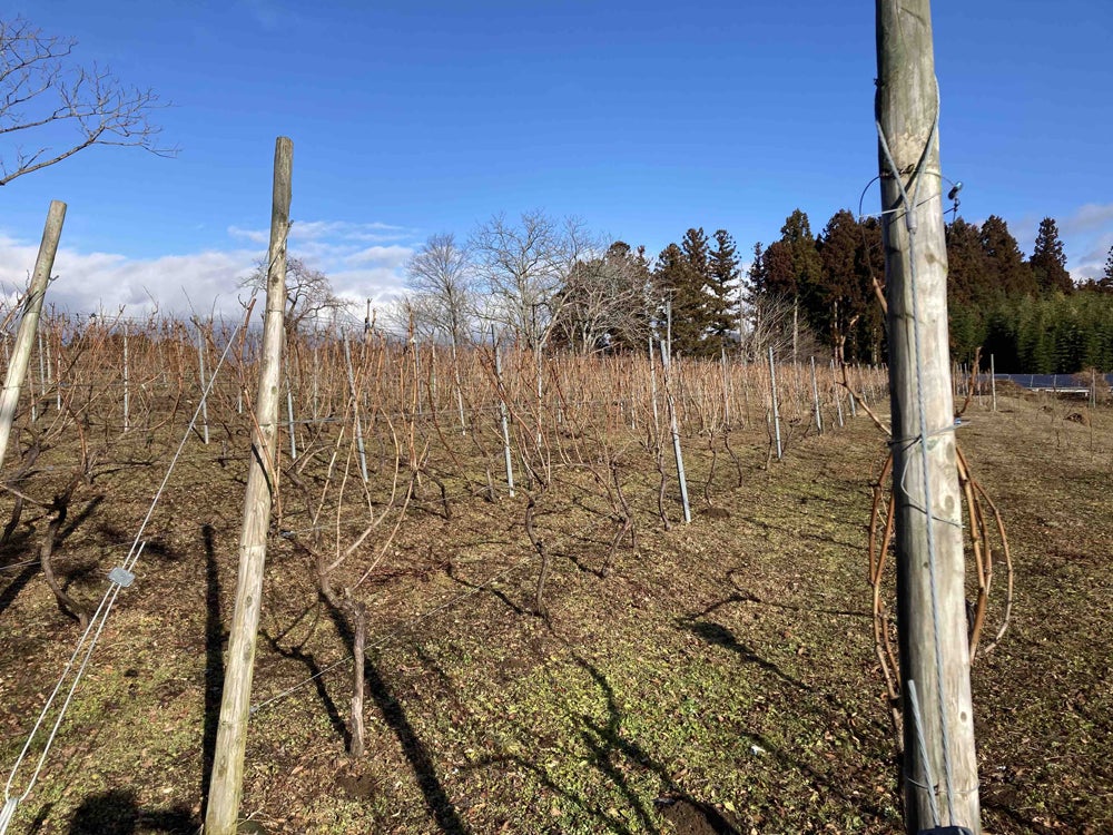 雪がほとんど降らない暖冬。例年に比べると暖かく、雪もほとんど降らない冬でした。そのため、剪定作業もいつもより早く取り掛かり、巻きひげの除去などの作業もじっくり時間をかけて行うことができました。