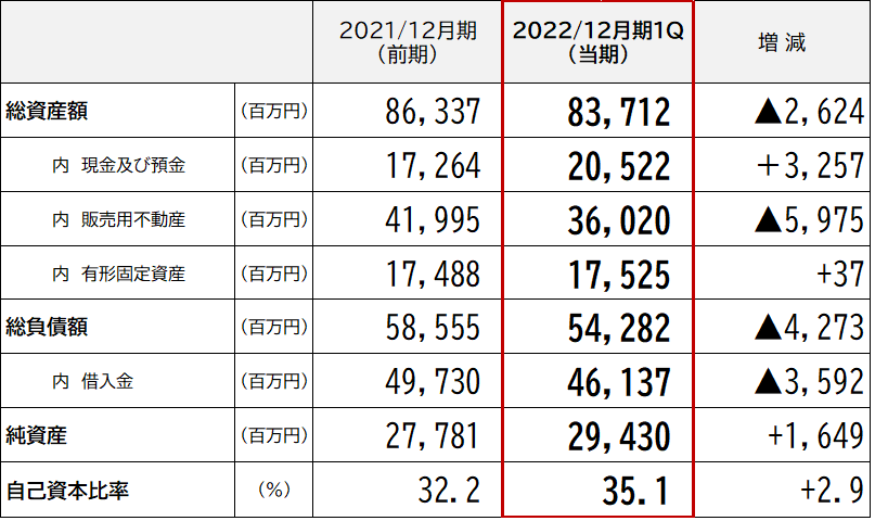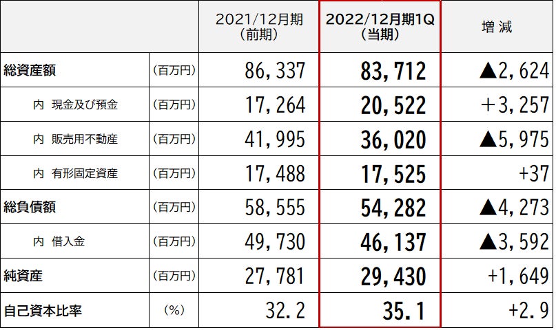 地主株式会社 2022年12月期第1四半期連結決算を発表 営業利益、経常利益、四半期純利益とも前期を上回る