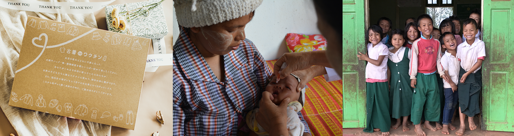 通常の「古着deワクチン」をご利用の場合は5人分寄付のところ、ギフト版では特別に10人分のポリオワクチンを寄付できます。