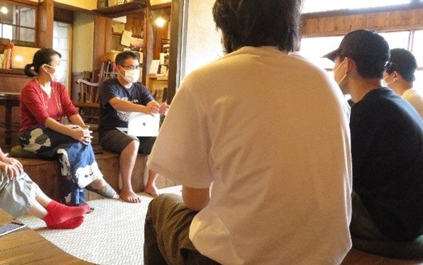 島の課題解決をおこなった実例を直接学ぶため、男木島にて、移住者である島民のご夫婦とクリエイターで対話の機会を持ちました。