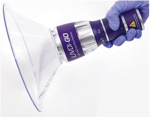 軽くて持ち運びやすく、UV-C放射への曝露から使用者を守る取り付け簡単な保護コーンシールドも搭載しています。
