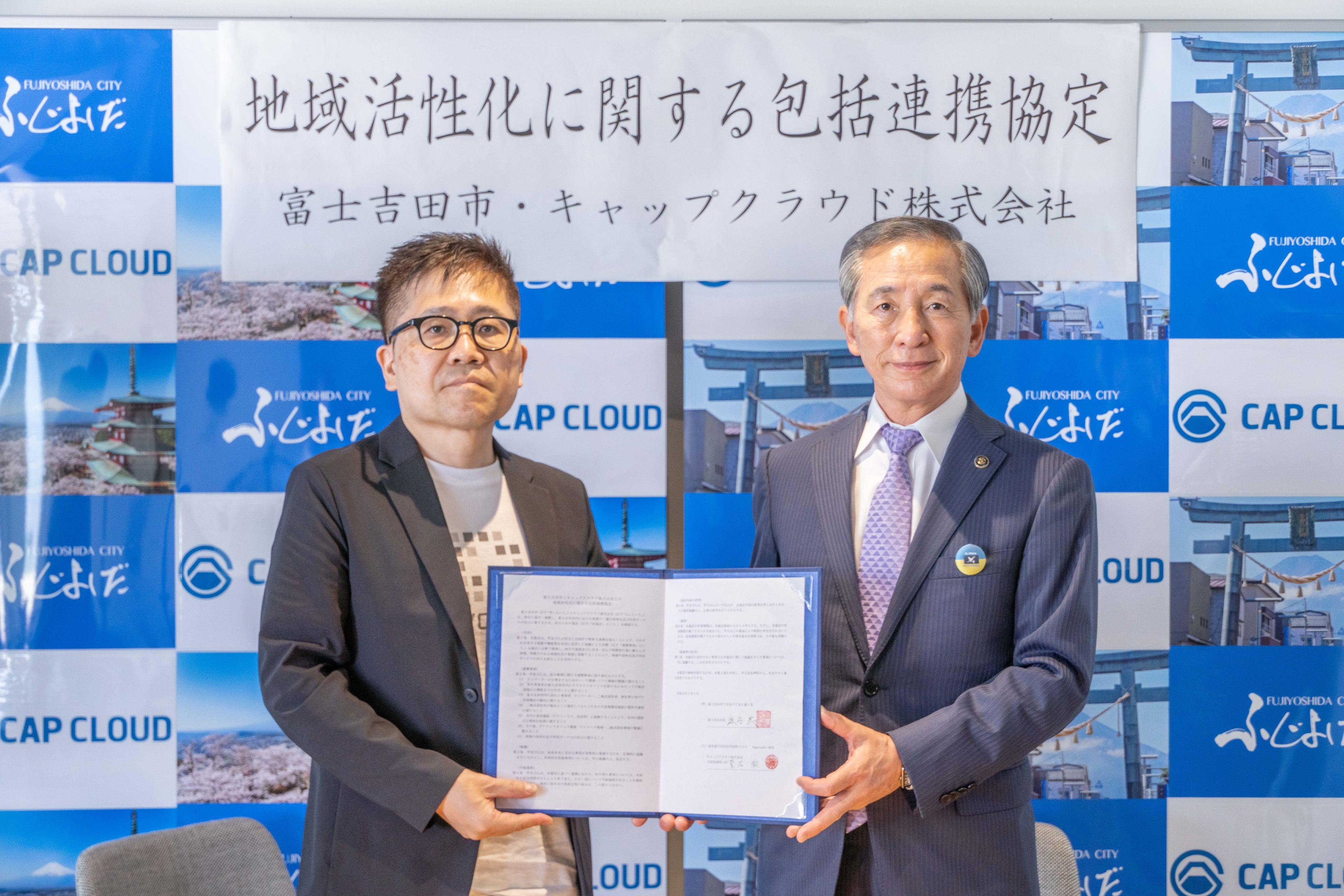 この度、企業理念「働き方、パーソナライズ」を掲げている「キャップクラウド株式会社(東京都千代田区、代表取締役CEO:萱沼徹、以下当社)」は、山梨県富士吉田市より「富士吉田市まるごとサテライトオフィス」に関する業務を受託し、2022年7月1日に事業をさらに活性化させるために富士吉田市と包括連携協定を結び、富士吉田市・富士急行株式会社と三者連携協定を結んだことを発表しました。