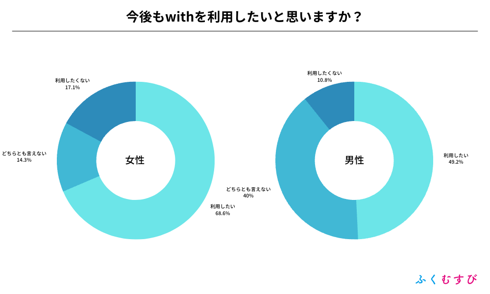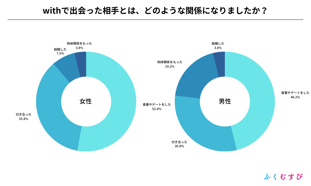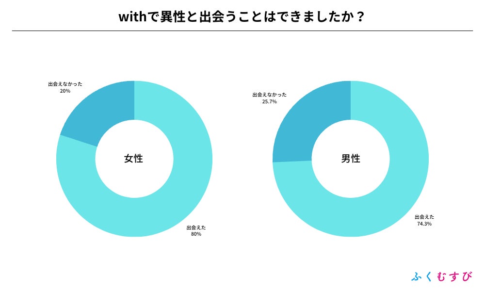 ・with(ウィズ)で異性と出会えた割合は、男性が74.3%、女性が80%となりました。