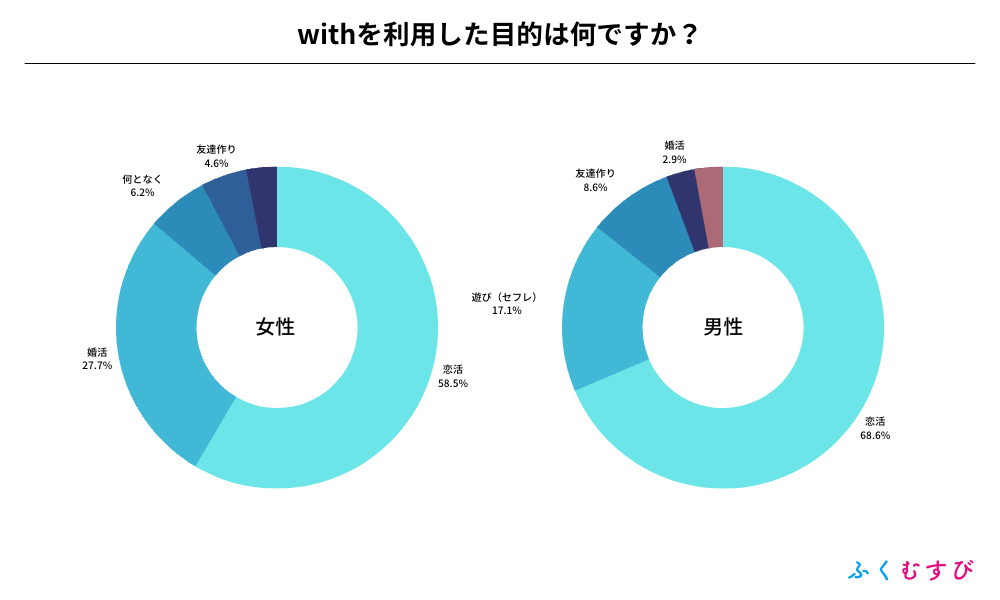 ・女性がwith(ウィズ)を利用した目的は、恋活が1位、婚活が2位となりました。