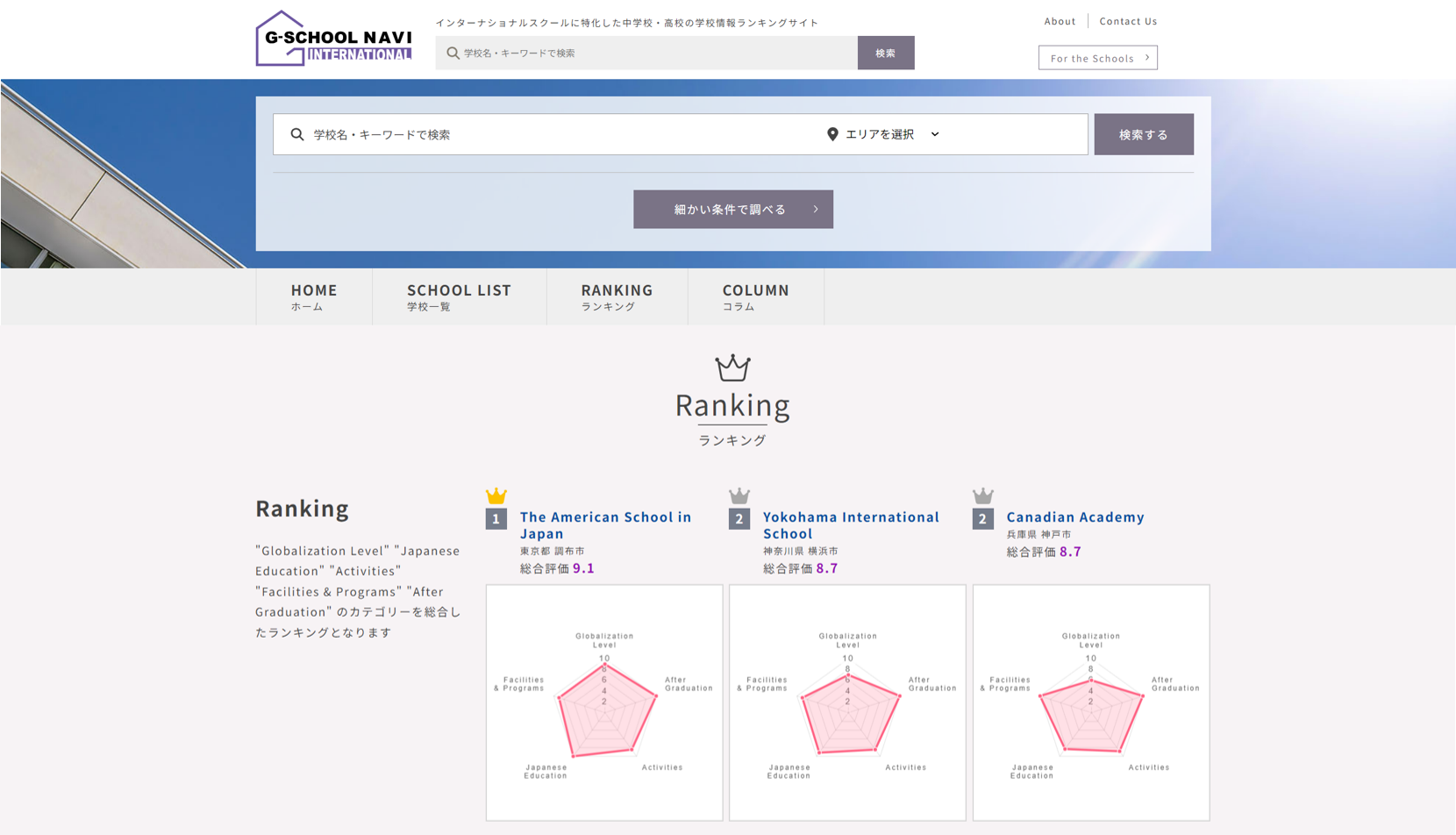 未来を生きる世代にとって必要な教育と考える「グローバル教育」を展開している、中学校・高等学校についての情報を提供しています。そのうち、この度は昨今急増中のインターナショナルスクールに関するコーナーをリリースいたしました。