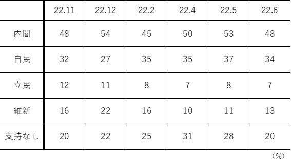 【表3】内閣支持率と主要政党支持率の推移