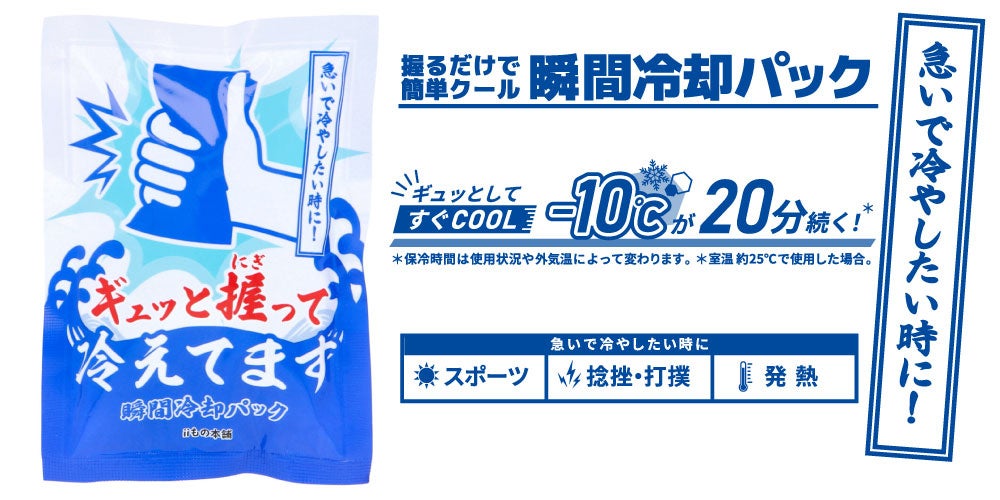 急いで冷やしたい時にご使用いただける「瞬間冷却パック」を発売いたしました。