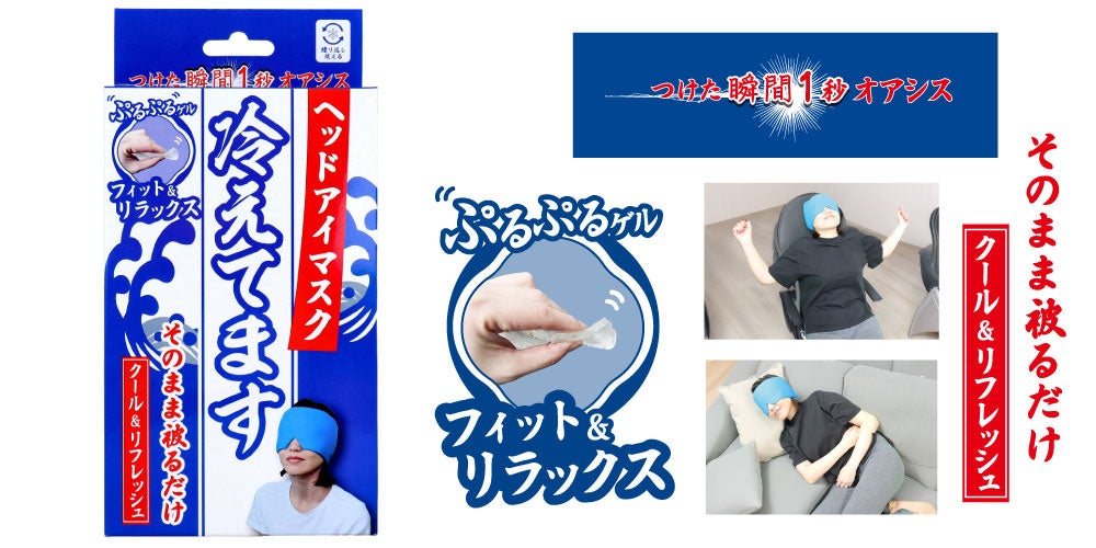 ぷるぷるの冷涼ジェルを内蔵したヘッドアイマスクを被るだけで「熱中対策」と「癒しの時間」を同時に実現させます。