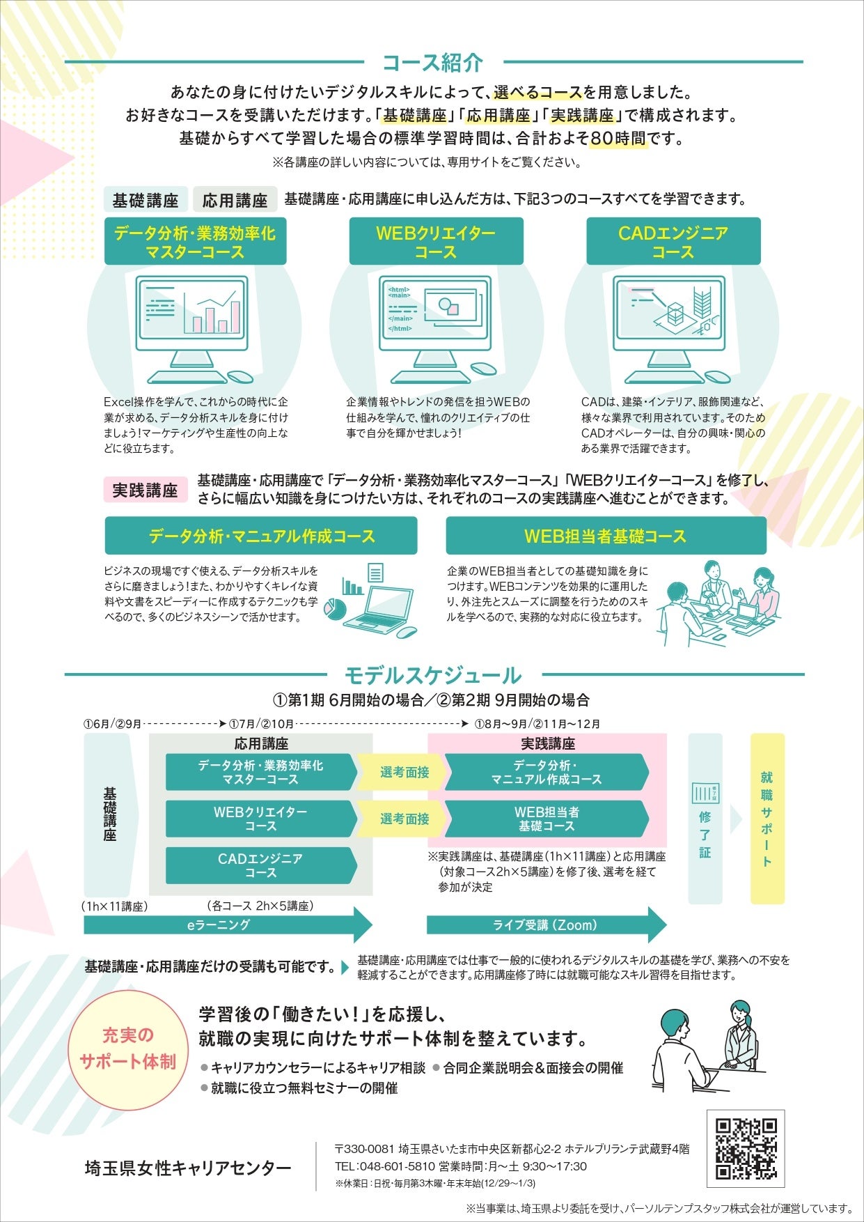 埼玉県在住または埼玉県内での就業を希望する女性(在職者の方も受講できます)