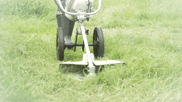 キャリー式草刈機はタイヤがついているので、地面に置いたまま押すだけで草が刈れます。