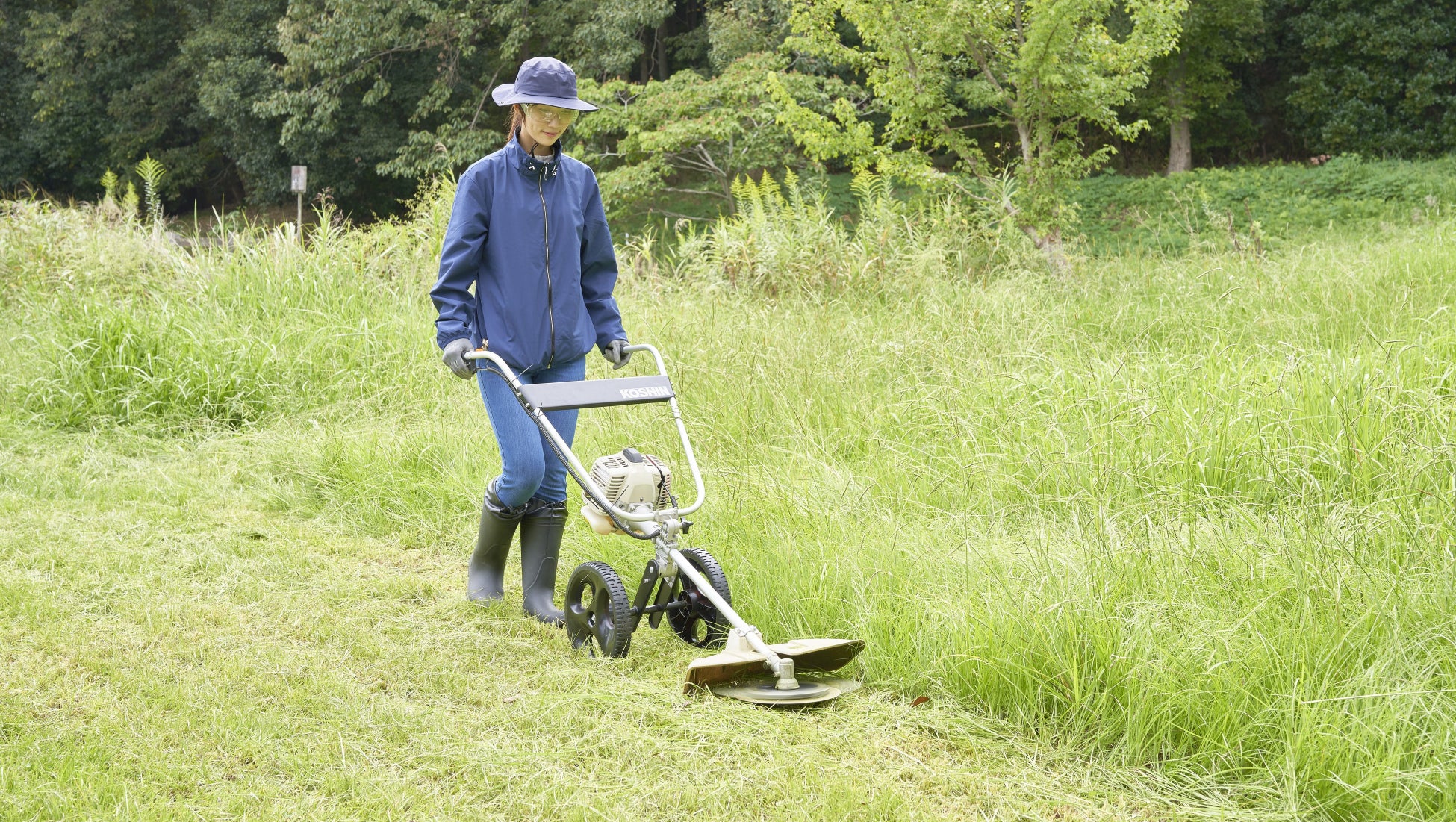 カートのように押すだけで草刈り可能、力の弱い方でもご使用いただけます。