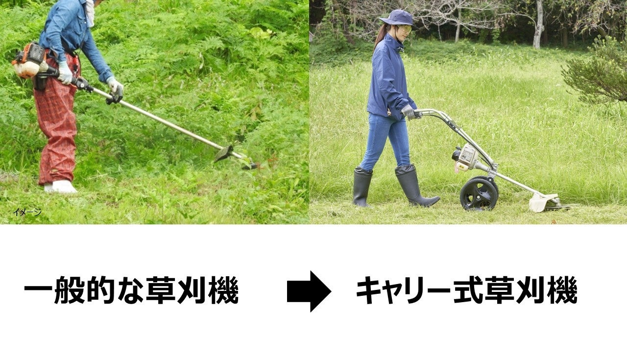 肩掛けしない、押すだけで草が刈れる『キャリー式草刈機』一般販売開始