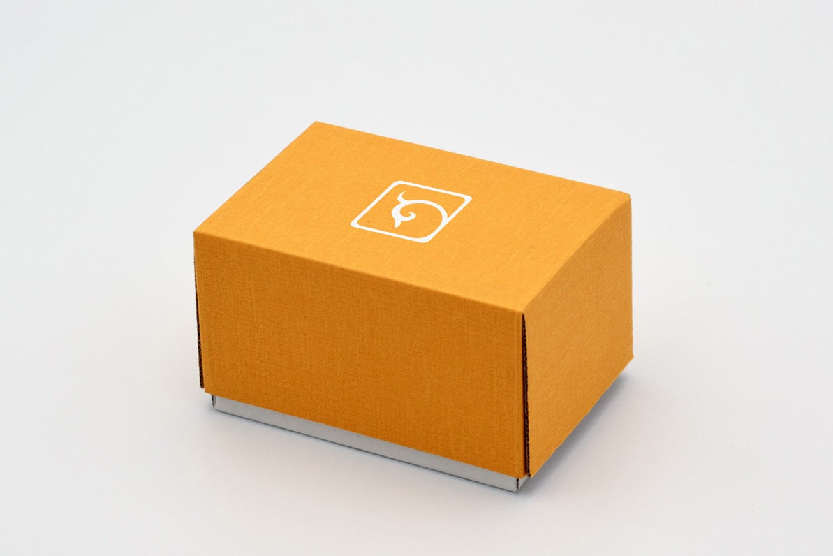 縁起の良さをかもし出す黄色い化粧箱。贈り物に適しています。