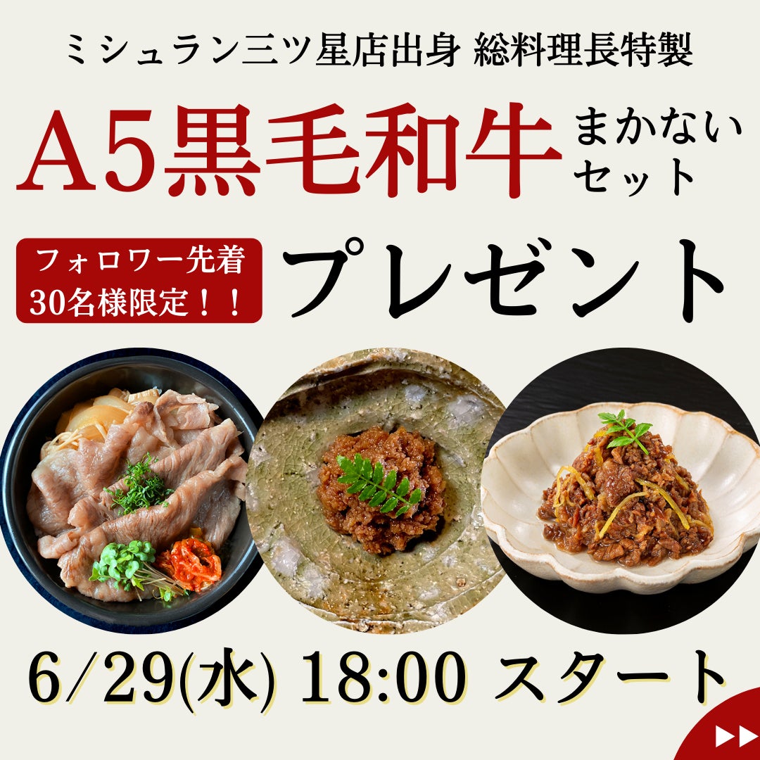 ミシュラン三ツ星店出身の総料理長特製「A5黒毛和牛まかないセット」がもらえるInstagramキャンペーンを6/29(水)より開始