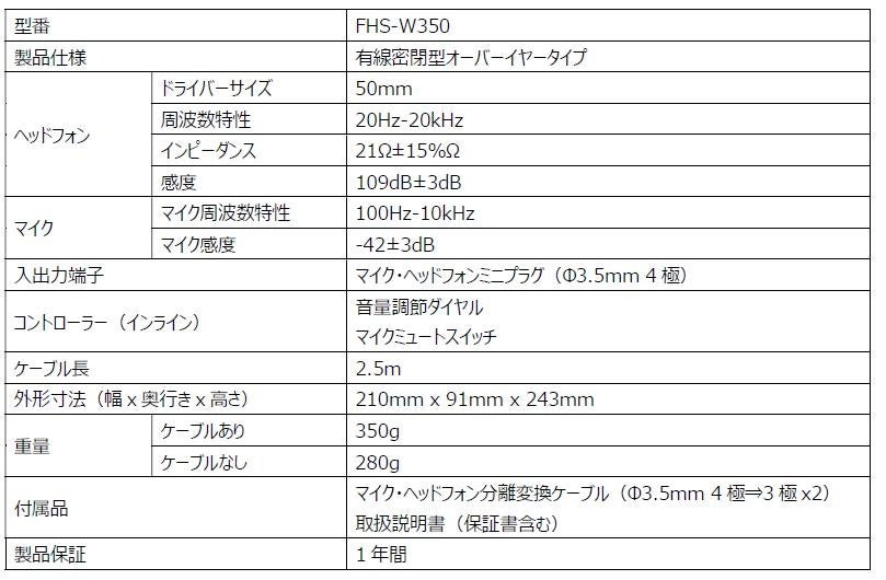「FHS-W350」は、業界最大クラスの大口径50 ㎜オーディオドライバーを採用しました。繊細な音から爆発音までを高品位に再現、高い遮音性も有しているのでゲームの世界をリアルに体感頂けます。やわらかい合成皮革を使用したイヤーパッドが快適な付け心地を実現するとともに、頭のサイズに合わせて自動で調整できる自動調整ヘッドバンドと柔軟性のあるスチールフレームの組み合わせによって、頭と耳への圧力が分散される構造になっており、⾧時間のプレイにも適しています。