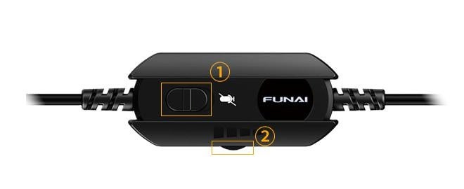 ① マイクミュートスイッチ:手元で素早くマイクをミュート
