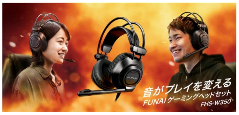 ヤマダホールディングスグループ独占販売「FUNAI ブランド」大口径50 ㎜オーディオドライバー採用ゲーミングヘッドセット<FHS-W350>
