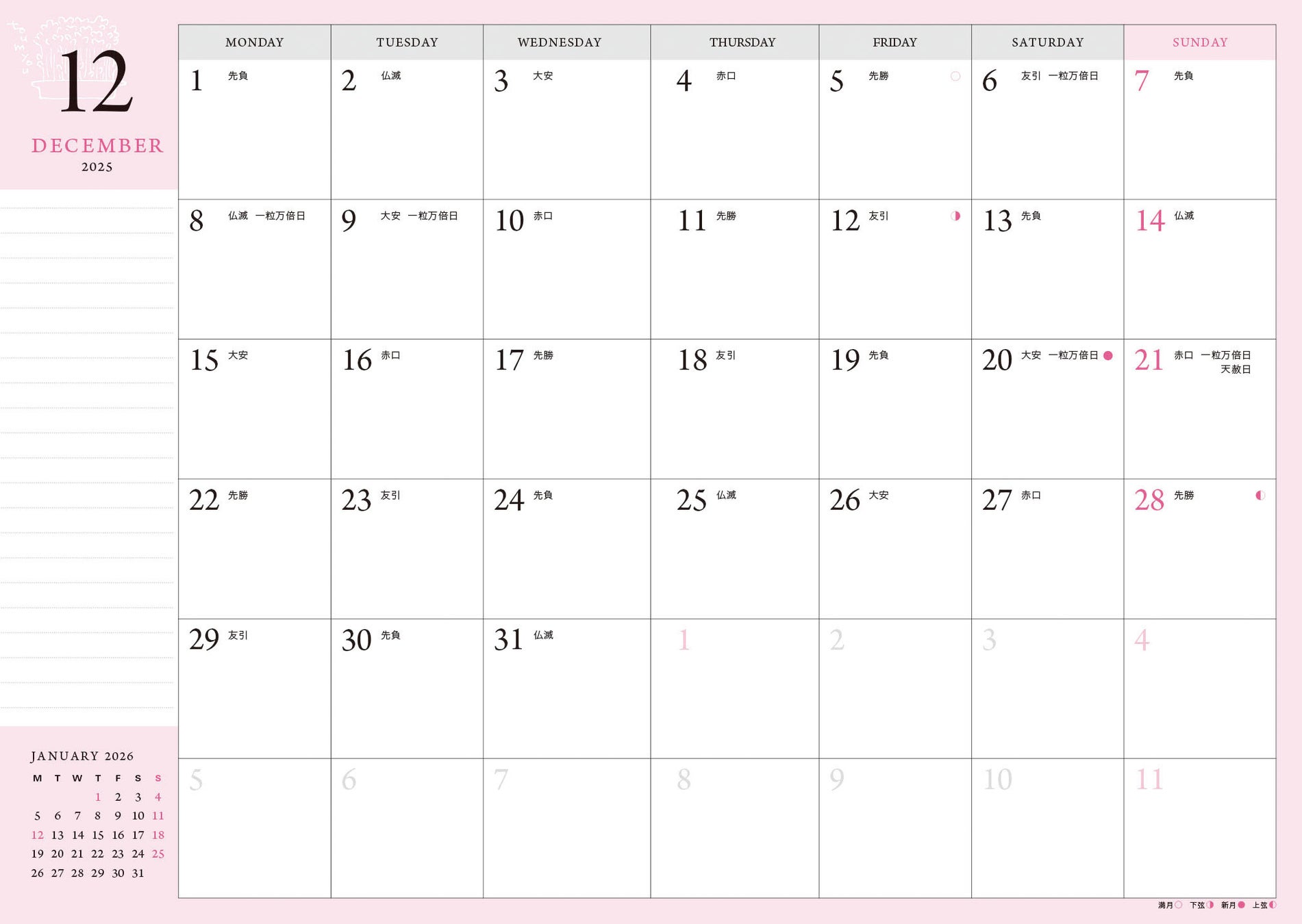 週間スケジュール(レフトタイプ)2025.12.~2026.12.