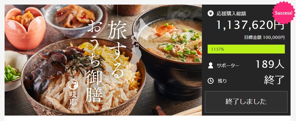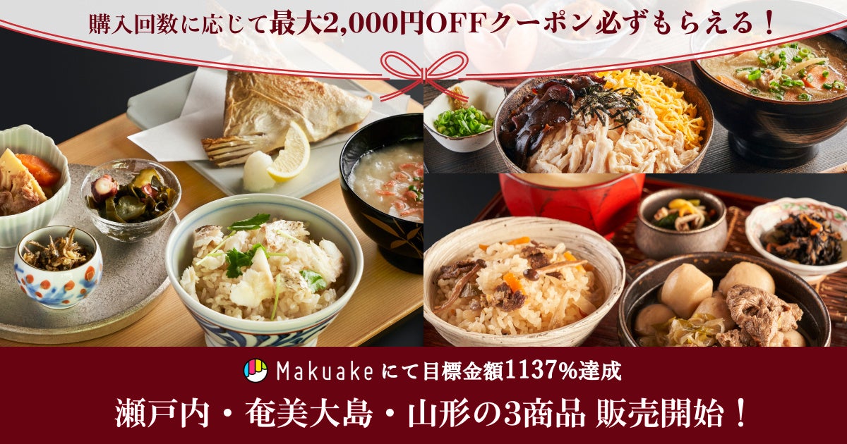 【目標金額1137%達成!】ご当地体験御膳セット「咲耶」、山形・奄美大島・瀬戸内をイメージした新商品の一般販売を開始!お得なキャンペーンも開催。