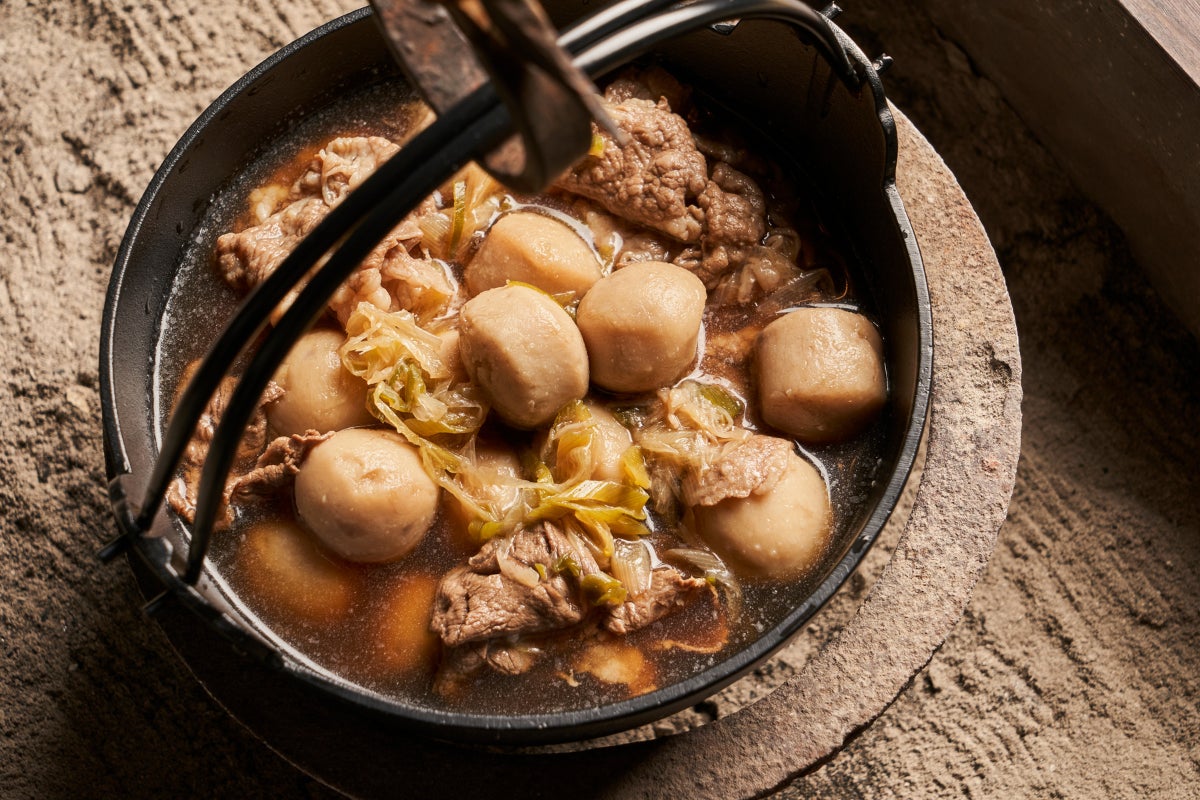 山形牛を100%使用した、贅沢な炊き込みご飯と大きめのお肉でボリューム満点の山形名物いも煮。伝統野菜を使った山形の郷土料理と共にお愉しみください。