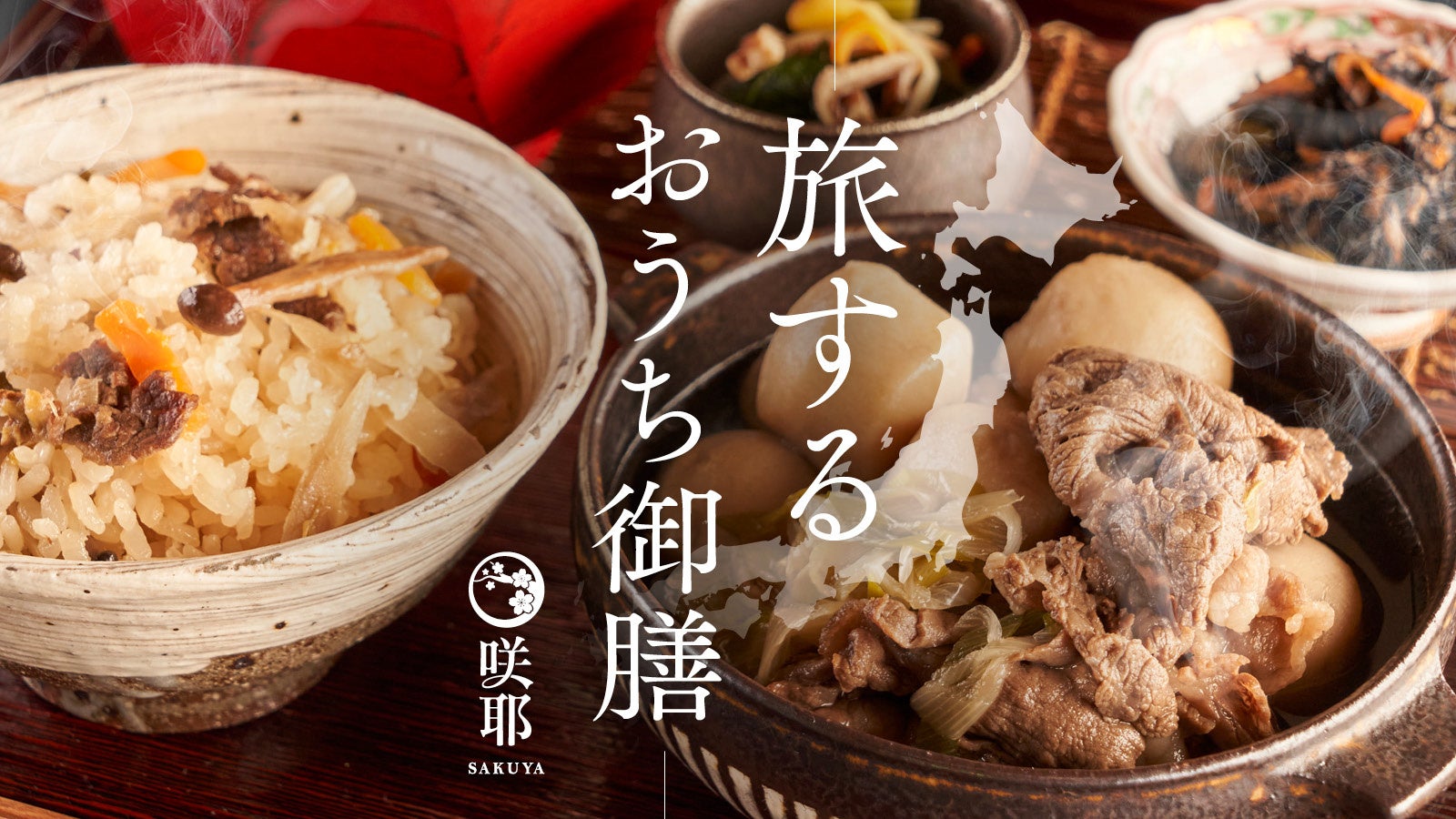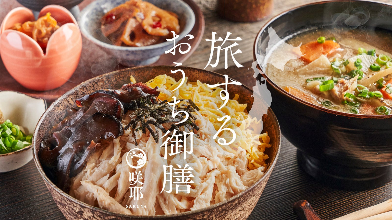 咲耶(さくや)は、「日本を愉しむ」というビジョンの元、日本各地をテーマに現地食材や郷土料理が自宅で簡単に味わうことができる『ご当地体験御膳セット』を販売しています。咲耶の御膳セットは時短や手軽さの利点がありながら、一汁三菜以上の和食献立が作れるので、自宅で非日常の特別な食事の時間を愉しめることが特徴です。