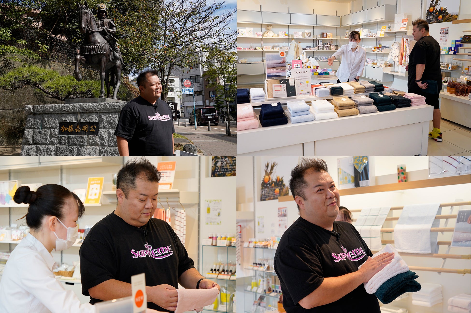 種類豊富で吸水力が高い今治タオルに大興奮の小杉さんは、汗を拭うハンドタオル以外にもフェイスタオルや枕カバーなどをお土産に購入。お気に入りのタオルを見つけることができました。
