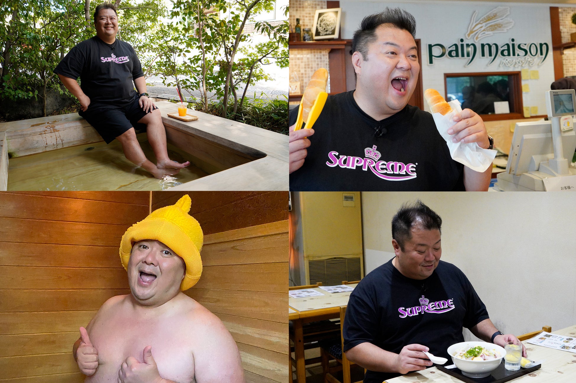 第2弾以降は、小杉さんが愛媛でやってみたいことを叶えるべく、松山市や八幡浜市へ。道後の足湯にかっこよく入る姿を写真に収めたり、塩パン発祥のパン屋・パンメゾンへ行ったりと、愛媛を大満喫。最後には、八幡浜市で100年以上の歴史がある老舗銭湯・大正湯でサウナを楽しみ、サウナ飯には同市のソウルフードである八幡浜ちゃんぽんを堪能しました。