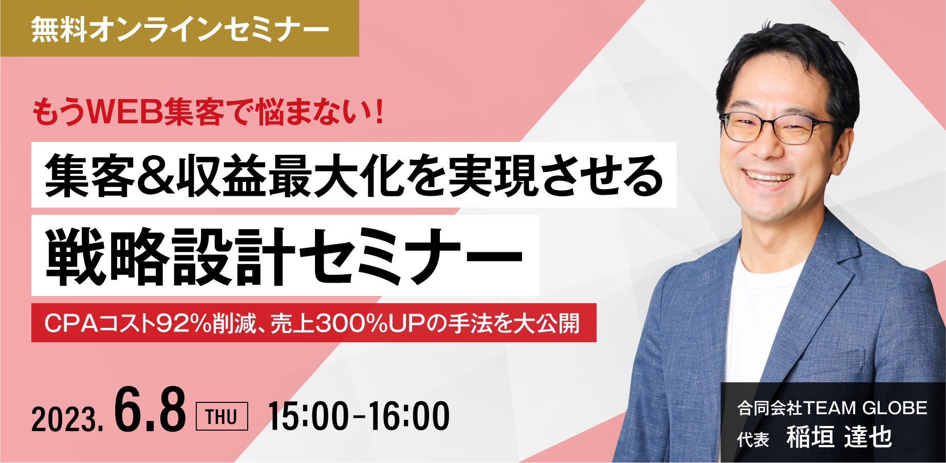 中小企業向けの集客支援100社以上、合同会社TEAM GLOBE 稲垣達也氏登壇!もうWEB集客で悩まない!集客&収益最大化を実現させる戦略設計セミナー開催!