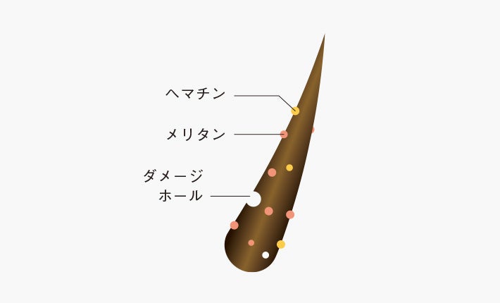 ダメージ部分を栄養で満たし、閉じ込めるスキンケア発想。さらにドライヤーの熱でキューティクルを閉じることで健康的な髪へと導きます。