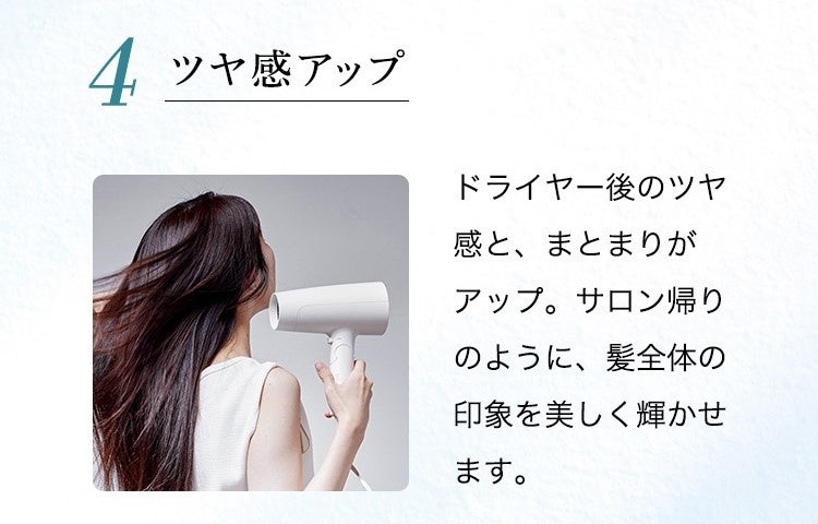 ドライヤー後のツヤ感と、まとまりがアップ。サロン帰りのように、髪全体の印象を美しく輝かせます。