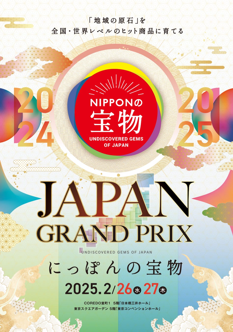 にっぽんの宝物JAPAN事務局(株式会社にっぽんの宝物内 (所在地:東京都文京区、代表取締役:羽根拓也))は、「にっぽんの宝物 JAPANグランプリ 2024-2025」を2月26日・27日、「日本橋三井ホール(COREDO室町1・5F)」、東京コンベンションホール (5F「東京スクエアガーデン」)にて、全国の自治体、商工会らと組み、地方の原石(無名事業者)を応援するグランプリを開催します。