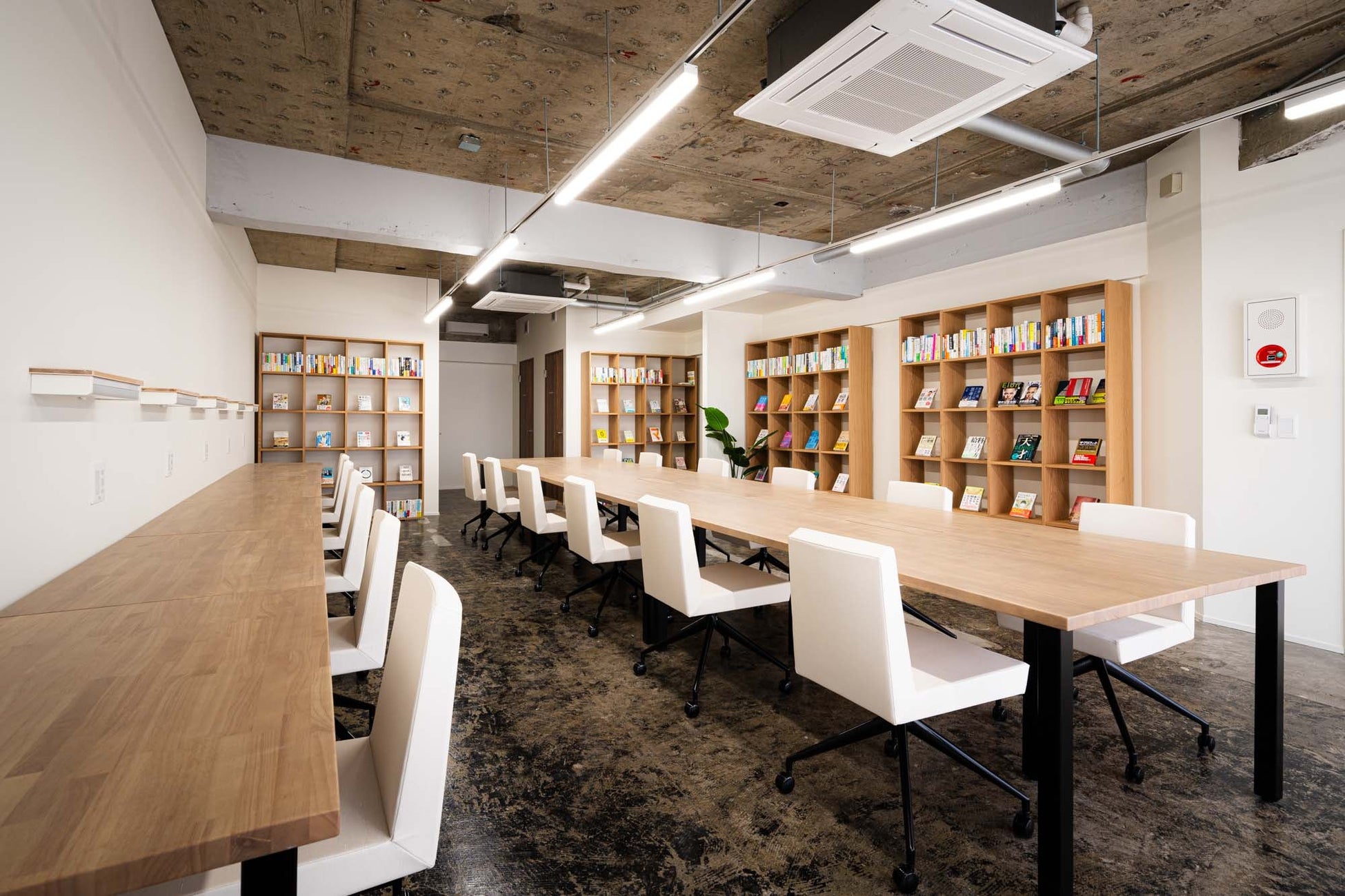 シェアオフィス内の選書は、客室と同じく“本”のプロであるdotメンバーが手がけております。