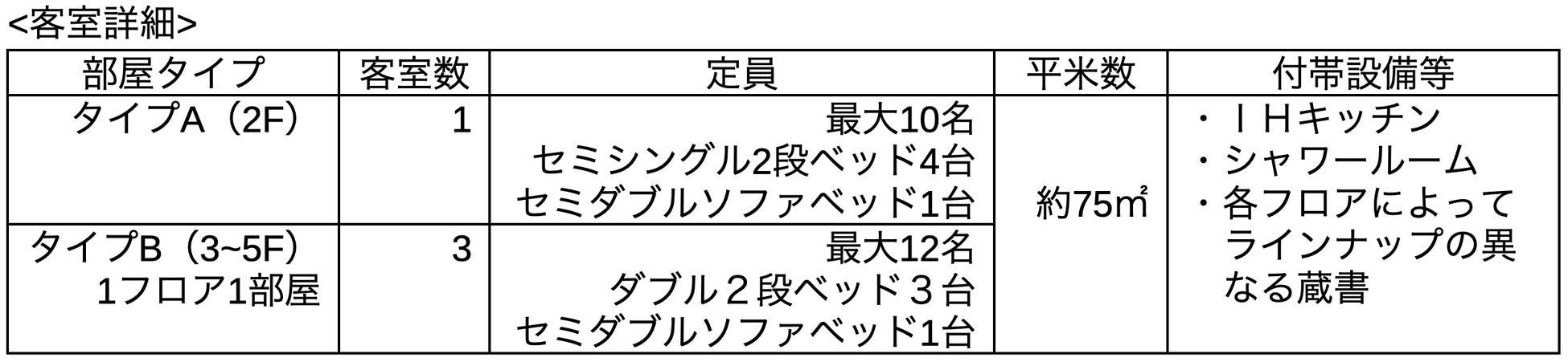 ・2階から5階までの宿泊フロアは、75㎡のフロア全体を一部屋とした、広々とした部屋割