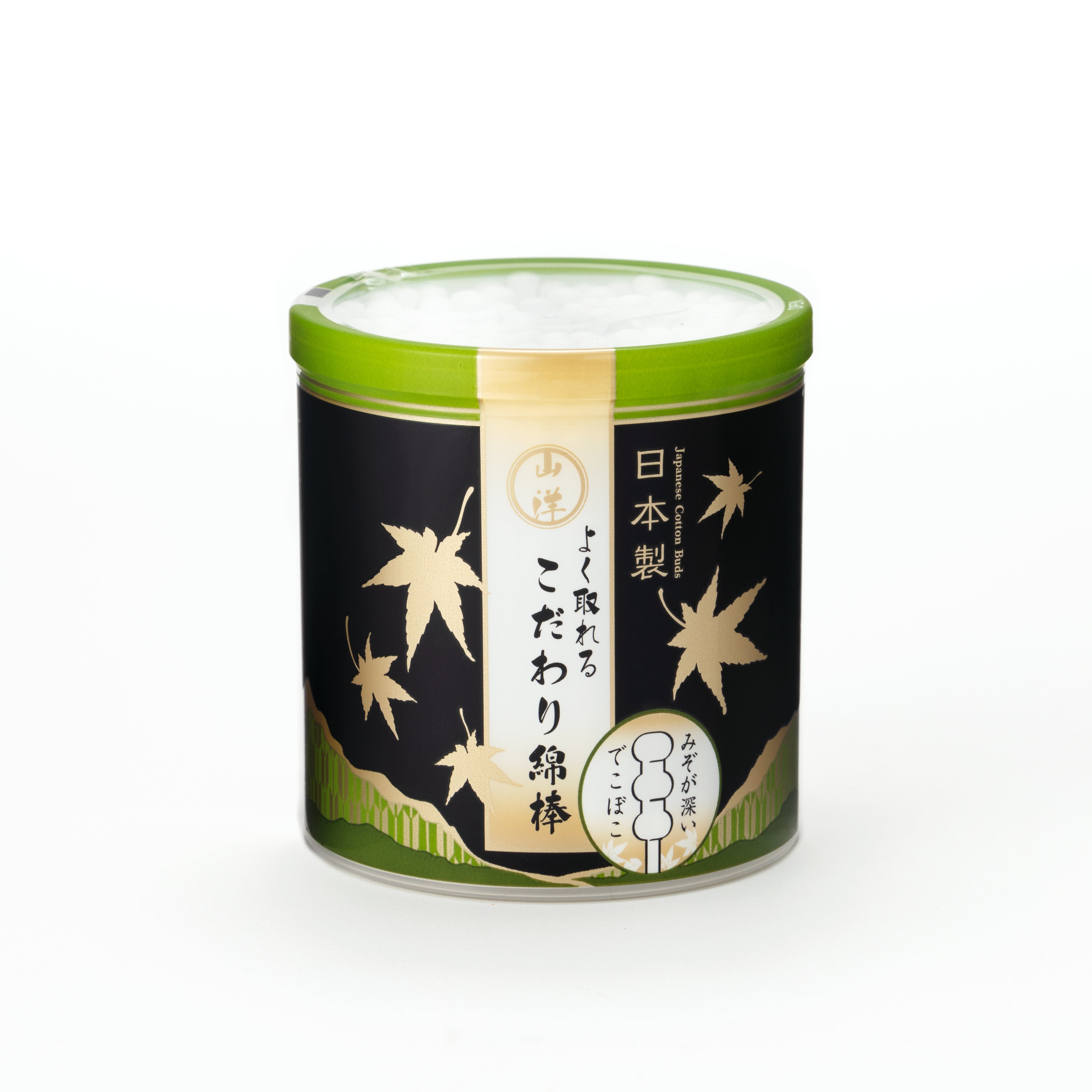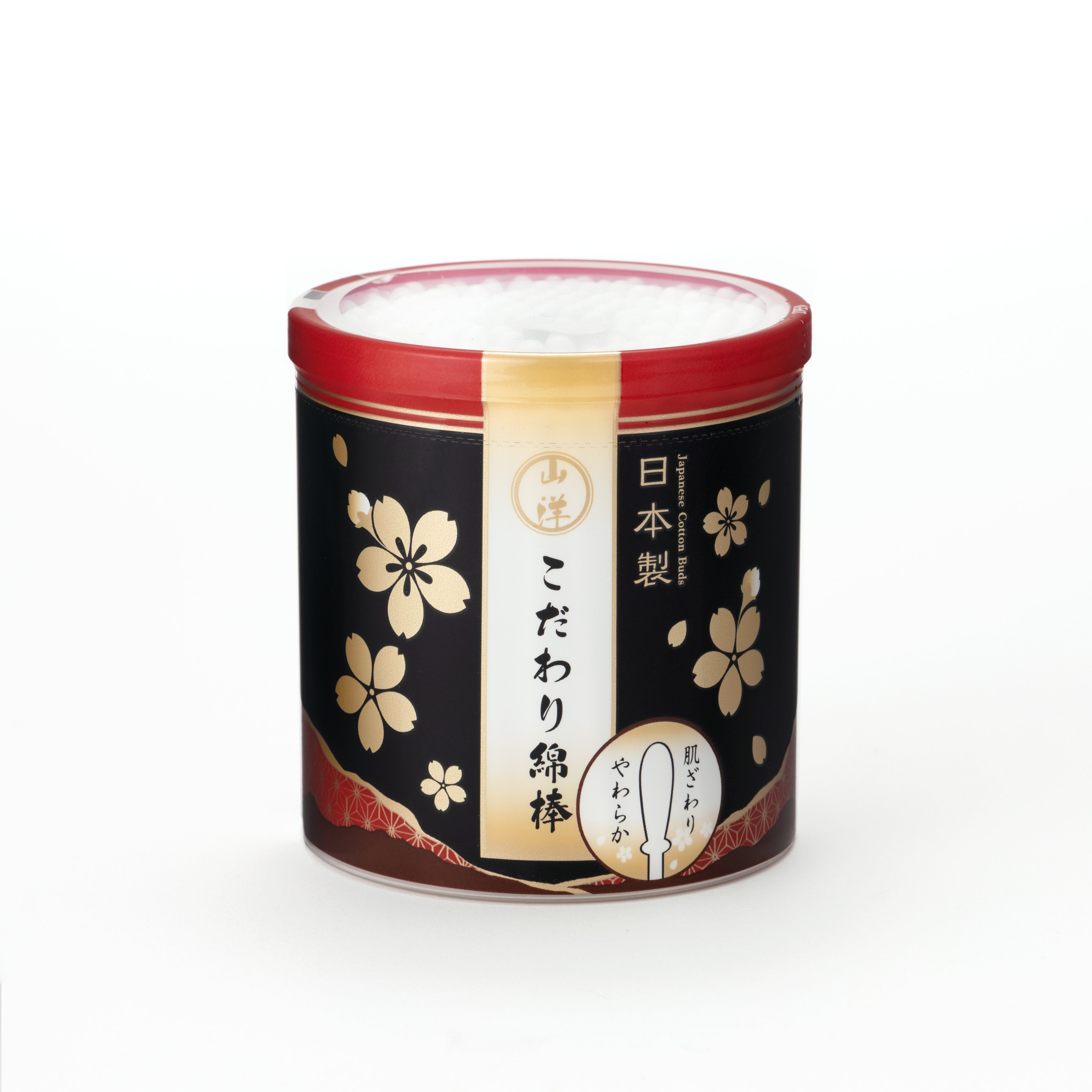 山洋 こだわり綿棒シリーズは、綿棒一筋の山洋がノウハウと技術を集結させた山洋の自信作です。安全面と使い心地に配慮した軸先のラウンド加工や軸の強化など、安全性と品質にとことんこだわって作った日本製の綿棒です。黒地をベースに各種キーカラーを生かし、デザインの統一感をUP!さらに高級感を演出しています。「リビングにも置ける綿棒」「生活感を感じさせない綿棒」になりました。