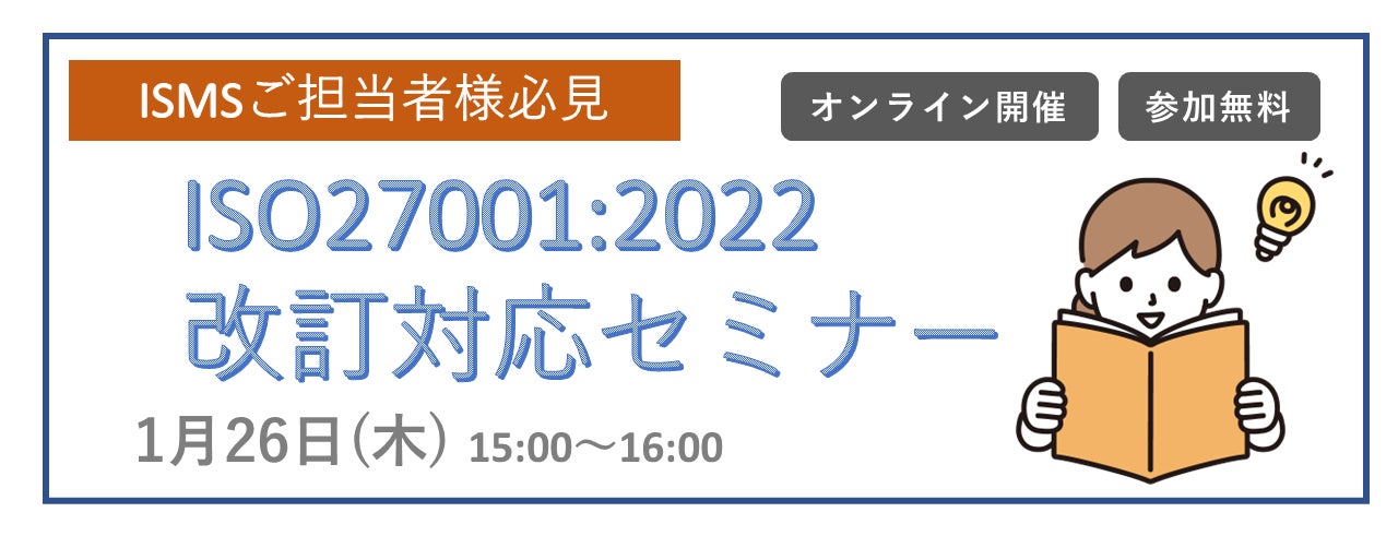 総合情報セキュリティサービスを展開する当社子会社の株式会社バルクにおいて、2023年1月26日(木)に「ISO27001:2022改訂対応セミナー」をオンライン開催いたします。