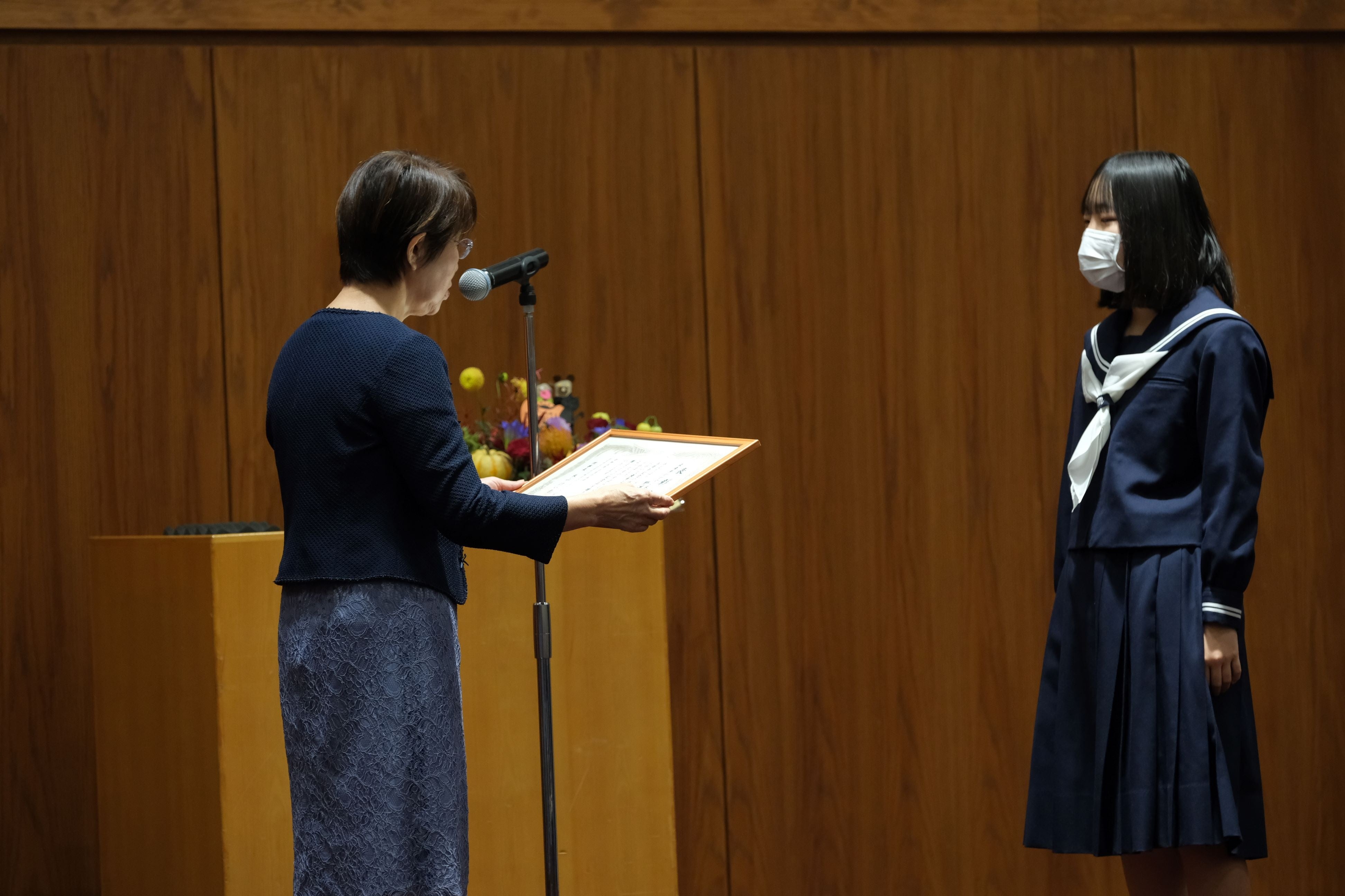 「フードバンクを通して人から人への思いやりの気持ちと優しい心で接することの大切さを学んだ。(中略)フードバンクから届く箱には折り紙やクリスマスカードがあって、優しさや温かさが感じられた。(中略)フードバンクからもらった優しい心と夢や愛を、将来私もあげたいと思った」というすばらしい作品です。表彰状と共に奨励賞を贈呈いたしました。