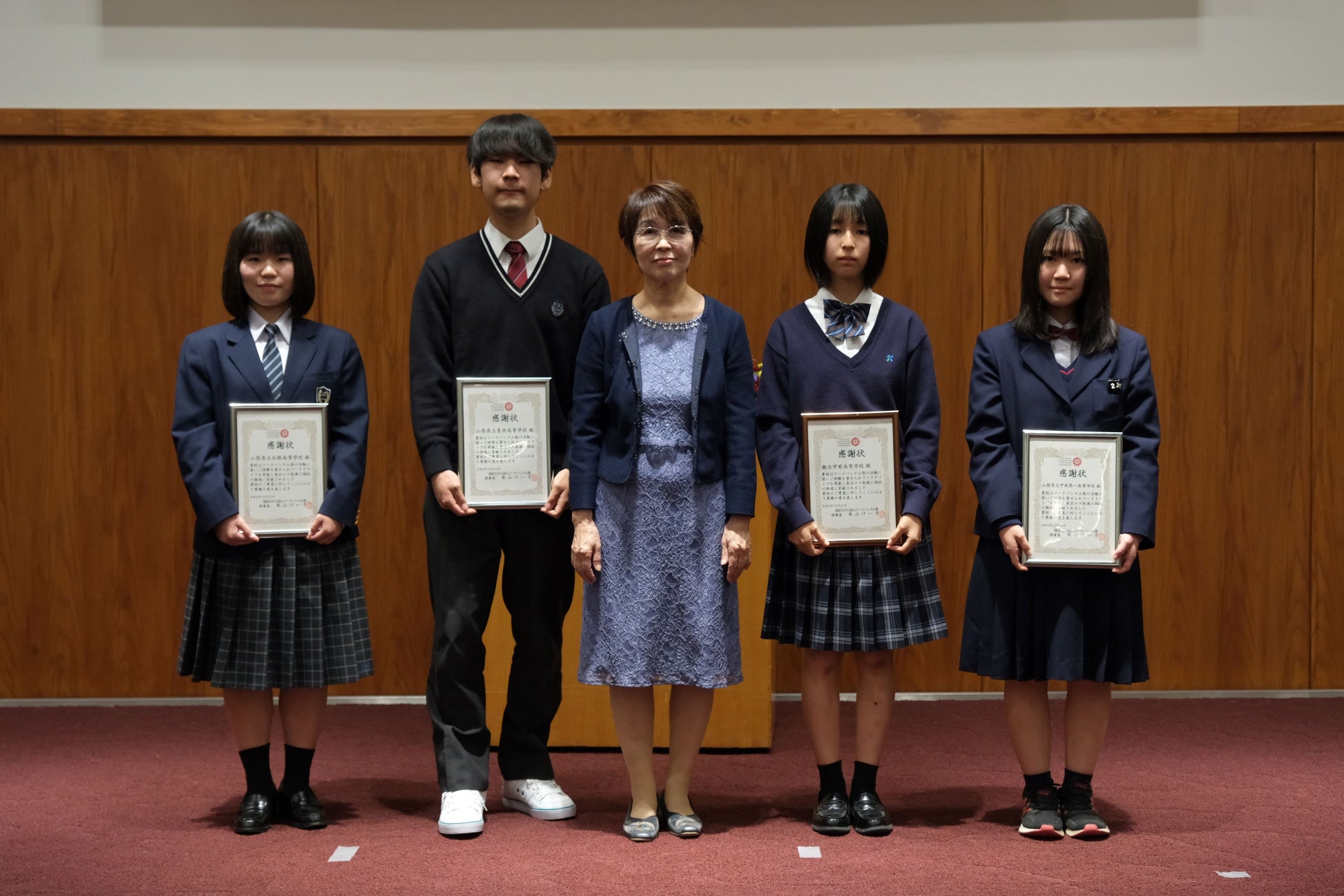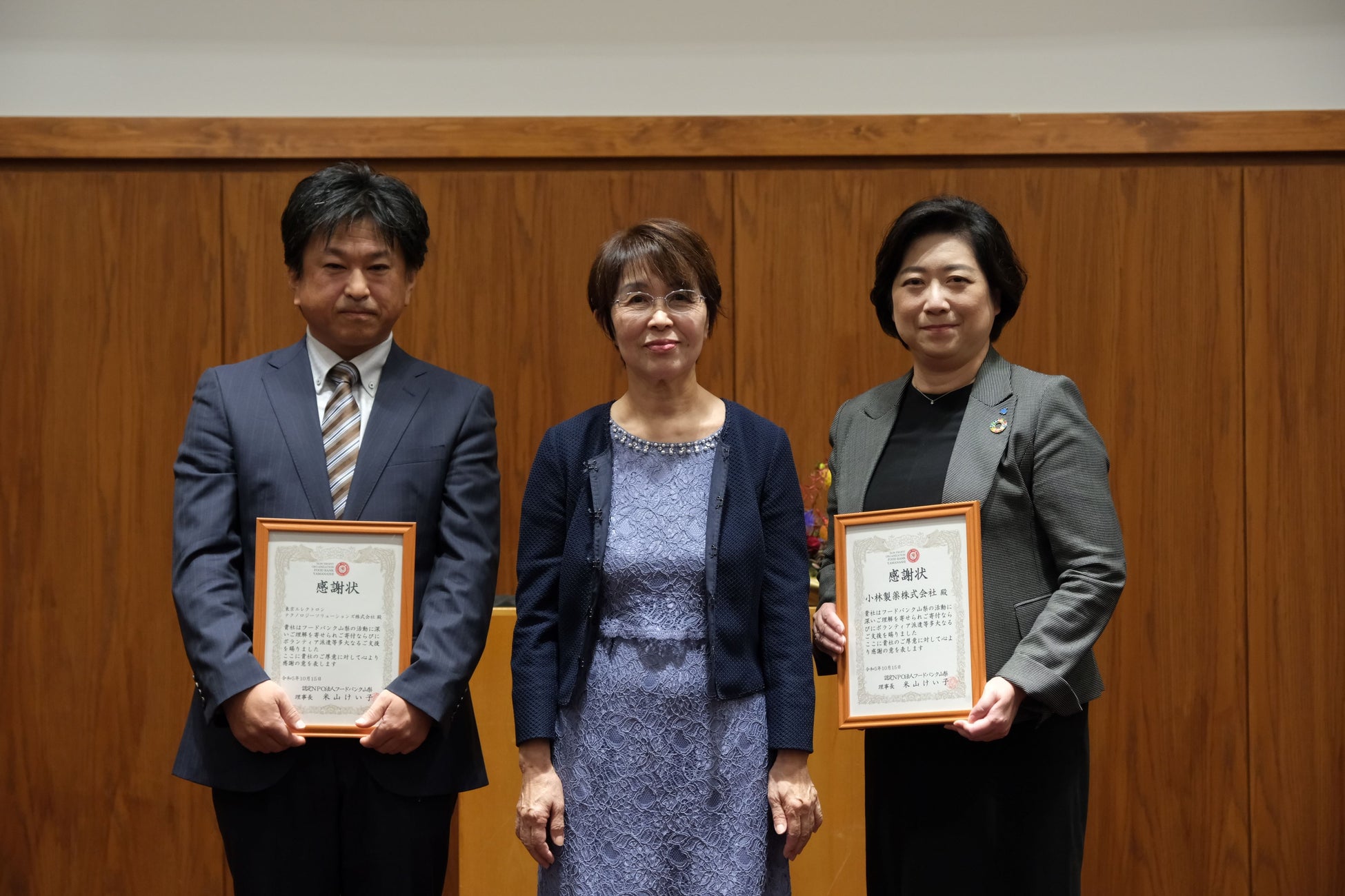 日頃からフードバンク山梨の活動を支えて下さっている企業様、フードドライブ活動やボランティアに積極的に参画してくださっている高校の皆様、貴重な時間を寄付して私たちの活動を支えて下さっているボランティアの皆様。それぞれ代表の方へ感謝状を贈呈しました。