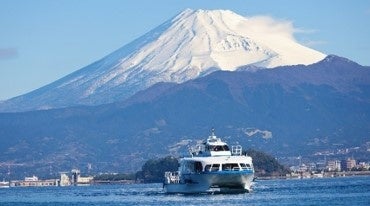 遊覧船では、富士山の絶景を眺めながら、たくさんのカモメ達と楽しく遊べます。