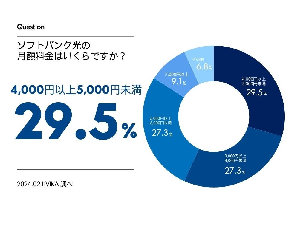 「4,000円以上5,000円未満」(29.5%)、「3,000円以上4,000円未満」(27.3%)と、”5,000円未満”の月額料金が、全体の約60%を占める結果になりました。