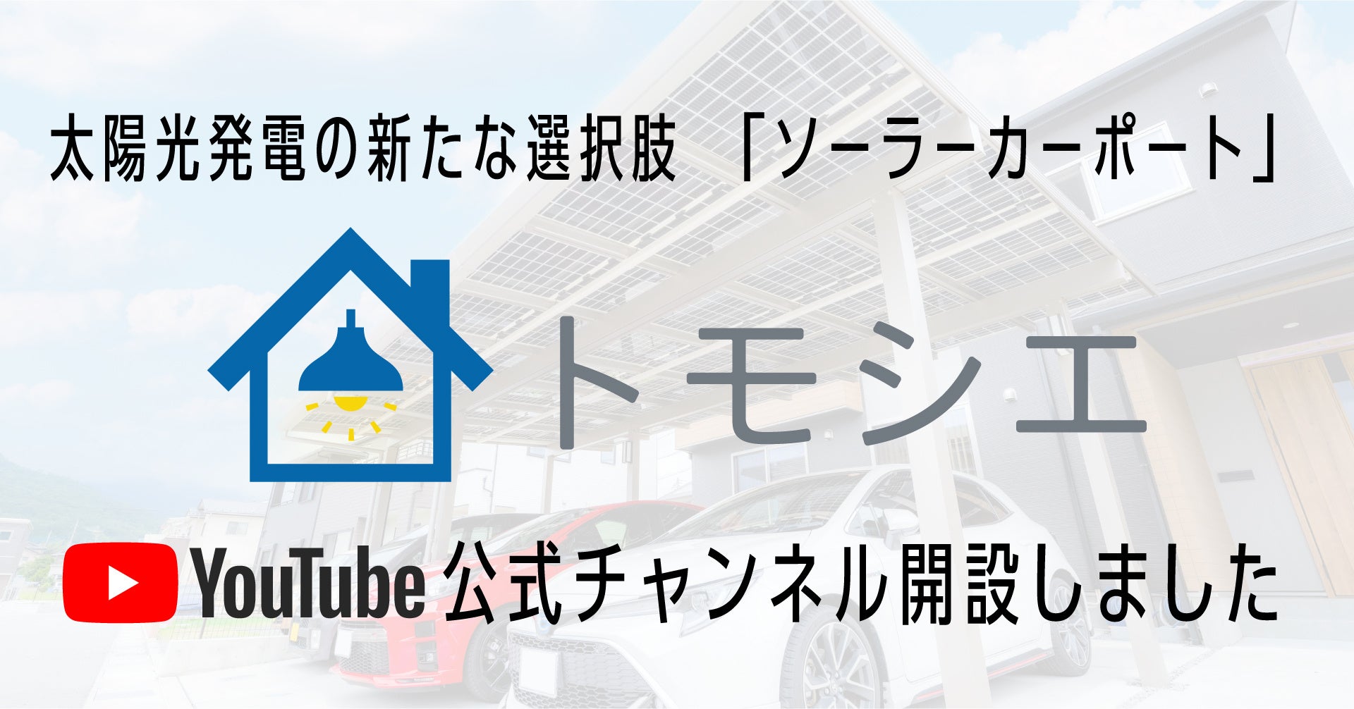 太陽光発電の新たな選択肢「ソーラーカーポート」のトモシエYoutubeチャンネル「ソーラーカーポートはトモシエ」開設!