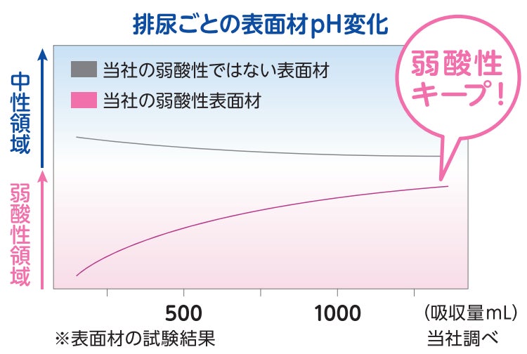 パッドの表面をずーっと素肌と同じ弱酸性に保つので、たくさんの尿を吸収しても安心です。