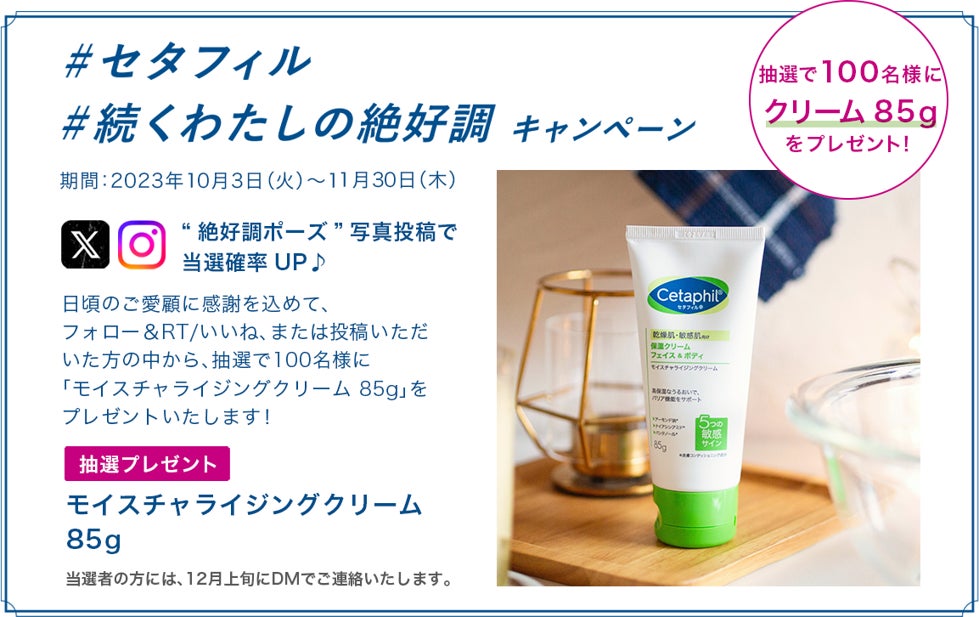 また、セタフィル®は新ブランドメッセージ「絶えないうるおいで、続く私の絶好調!」公開に合わせ、この秋冬様々なキャンペーンを展開して参ります。キャンペーンの詳細はオフィシャルHPをご覧ください。