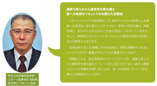 帝京大学医療技術学部の「下村一之」准教授からも優れた安眠枕と太鼓判を頂きました。