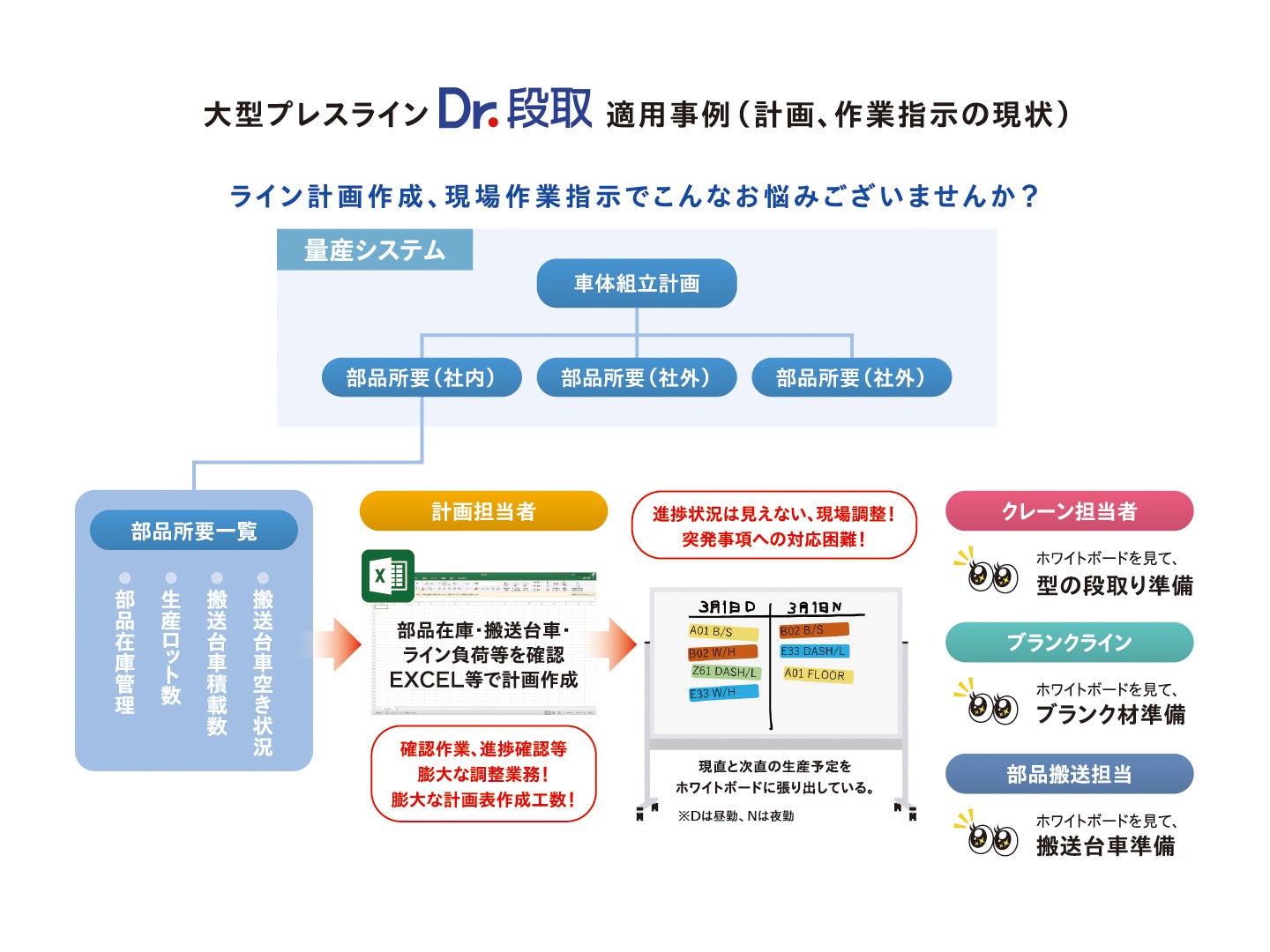 【図2.大型部品生産ライン「Dr.段取」適用事例(計画、作業指示の現状)】ご参照
